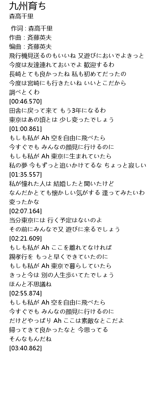 | [03:07.266] | もしも私が Ah 空を自由に飛べたら |