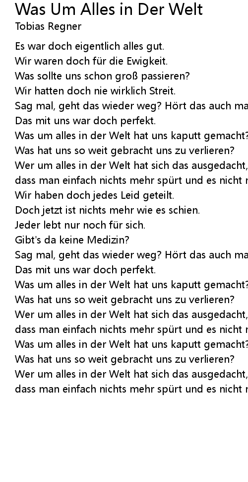 | Song | Was Um Alles in Der Welt |
