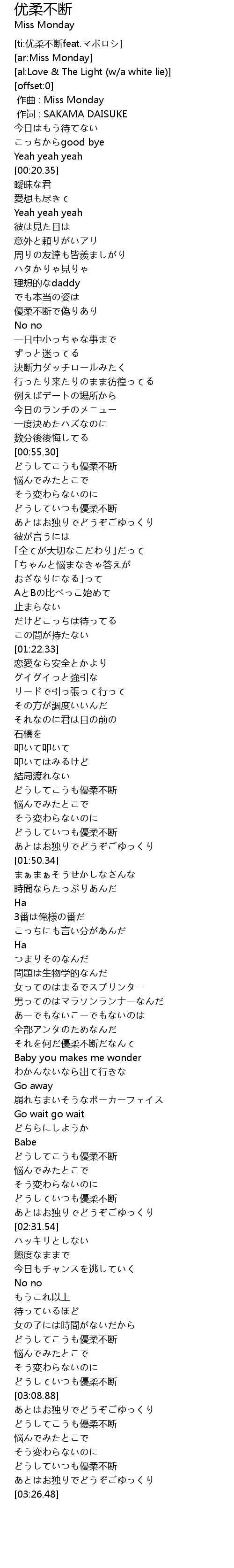 | [00:00.00] | zuò qǔ : Miss Monday |