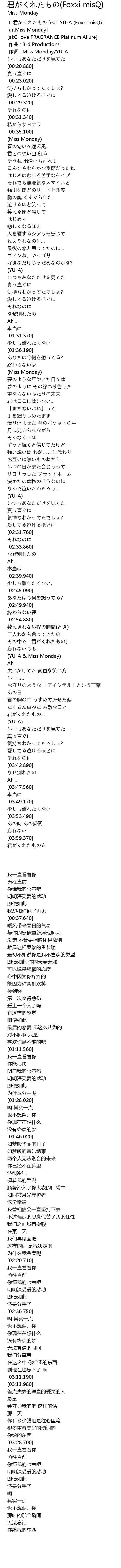 | [03:11.190] | YUA Miss Monday |