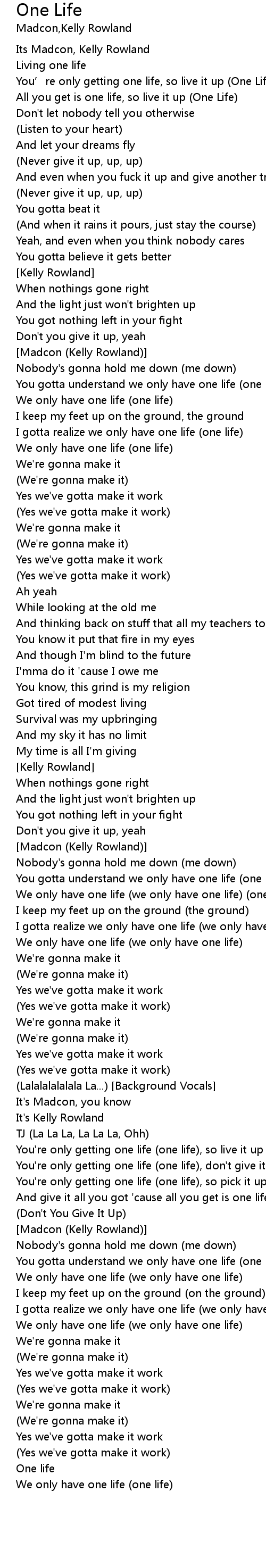 | We only have one life (we only have one life) (one life) | |