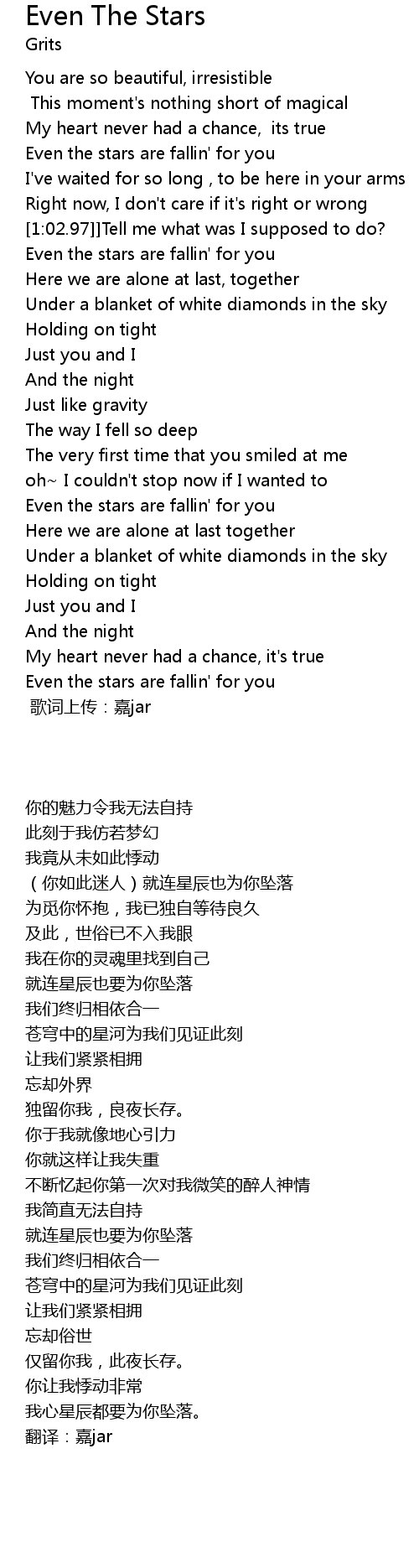 | [3:14.00] | Even the stars are fallin' for you |
