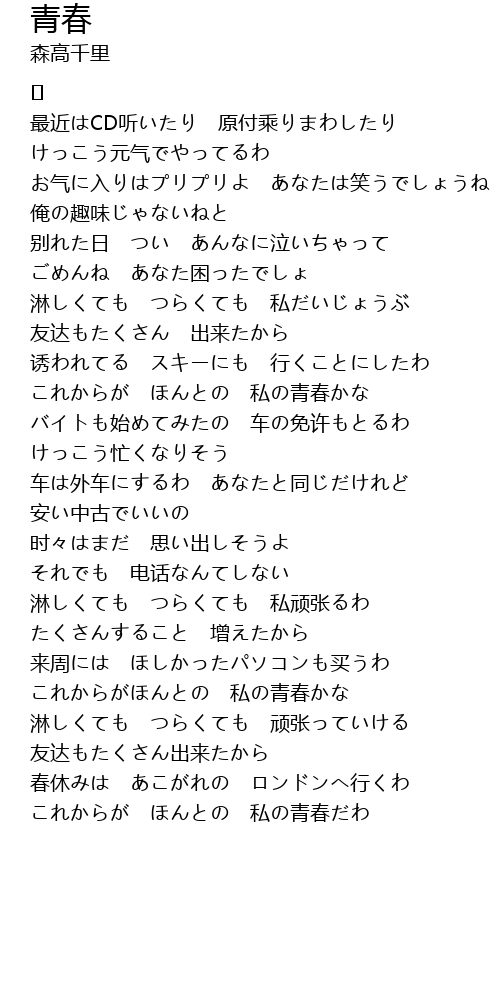 | これからがほんとの 私の青春かな | |