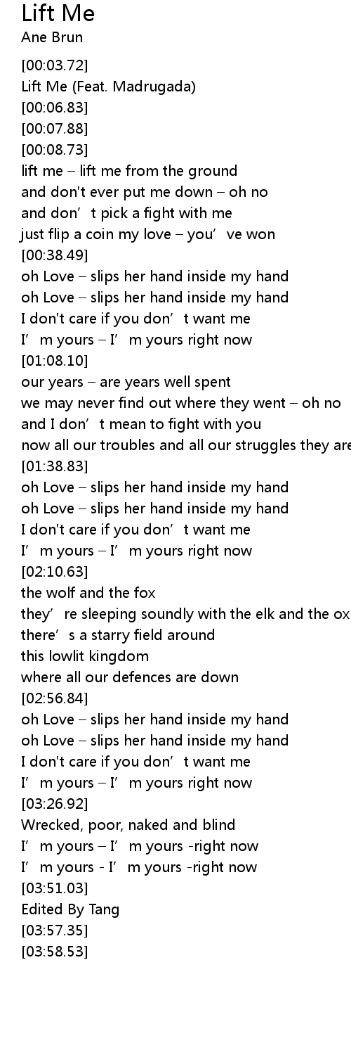 | [00:04.86] | Lift Me (Feat. Madrugada) |