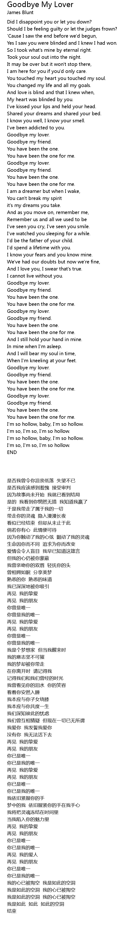 Goodbye my lover. |