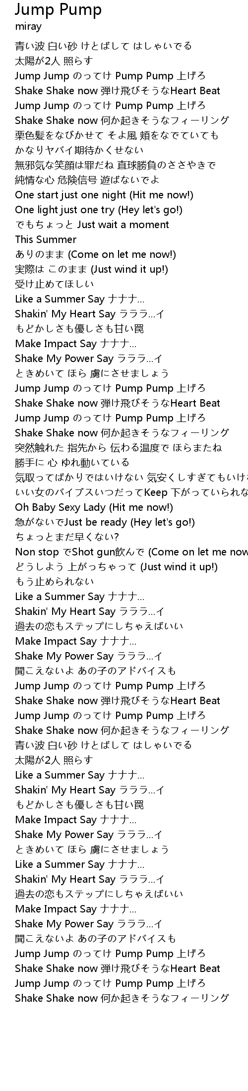 | Jump Jump のってけ Pump Pump 上げろ | |