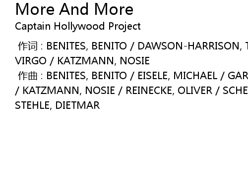| [00:00.000] | 作曲 : BENITES, BENITO / EISELE, MICHAEL / GARRETT III, JOHN VIRGO / KATZMANN, NOSIE / REINECKE, OLIVER / SCHEIN, GIORA / SCHLINGLOFF, FRANK / STEHLE, DIETMAR |