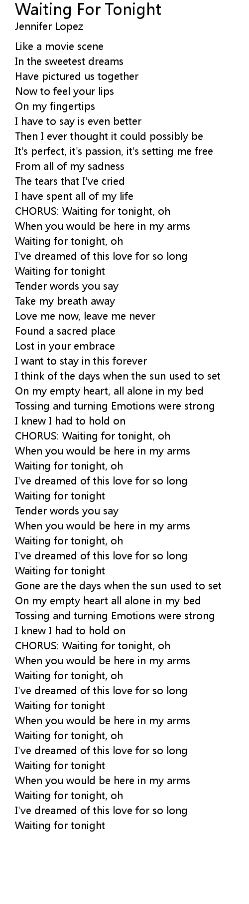 CHORUS: Waiting for tonight, oh |
