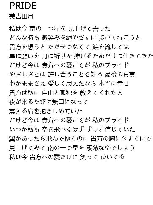 | [01:29] | だけど今は 貴方への愛こそが 私のプライド |