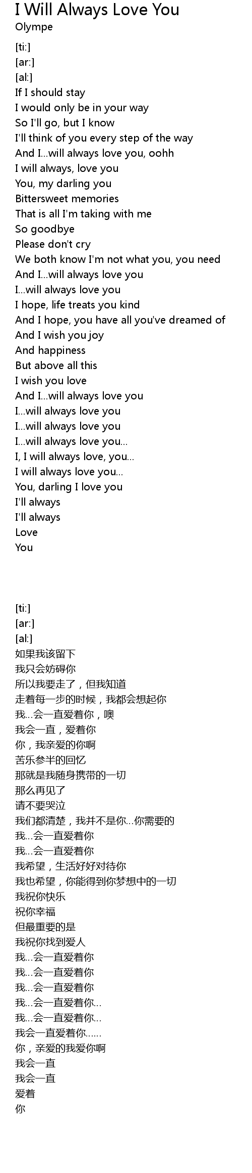 | [00:42.04] | And I...will always love you, oohh |