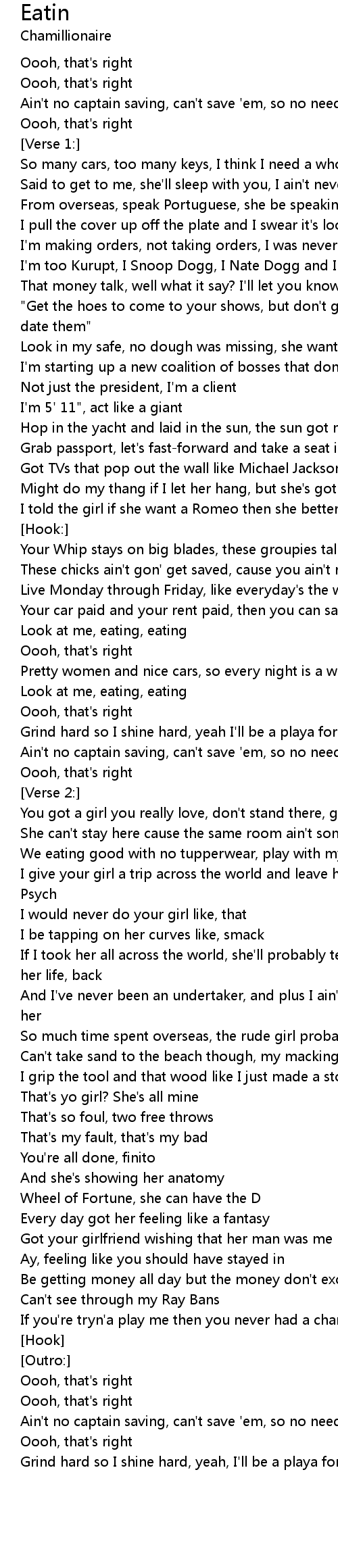 Your car paid and your rent paid, then you can say that you're eating |
