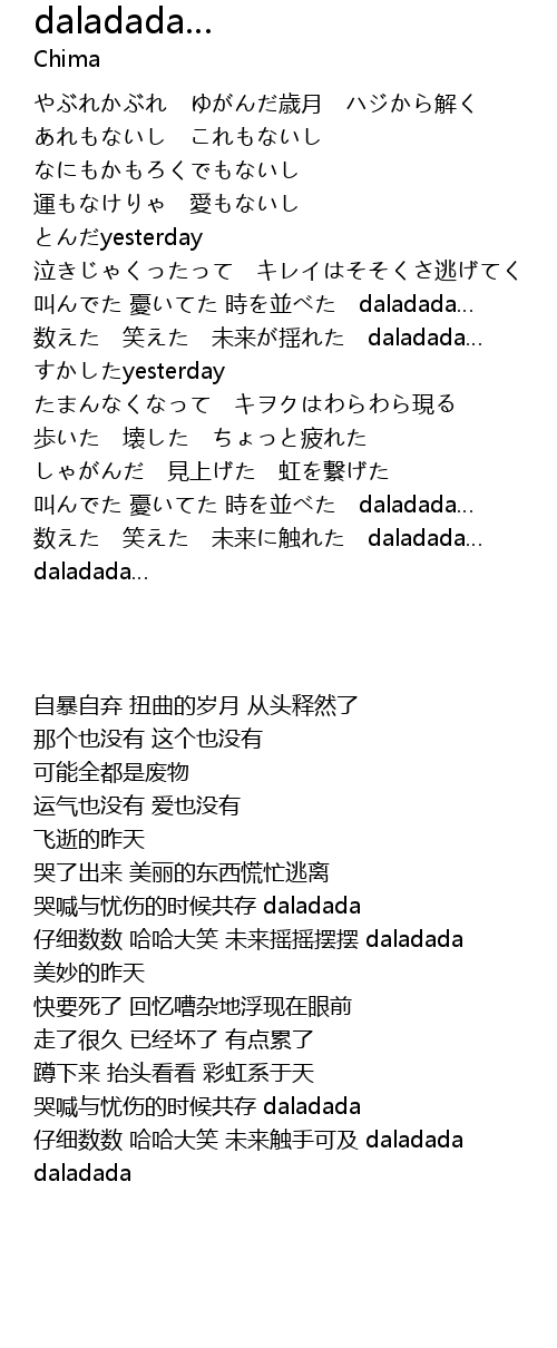 | [00:51.490] | 叫んでた 憂いてた 時を並べた daladada… |