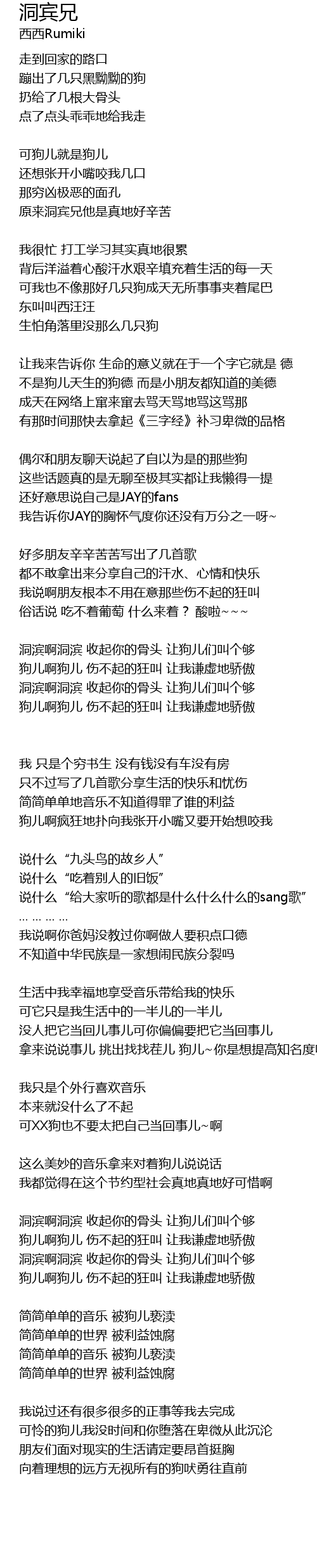 | 洞滨啊洞滨 收起你的骨头 让狗儿们叫个够 | |