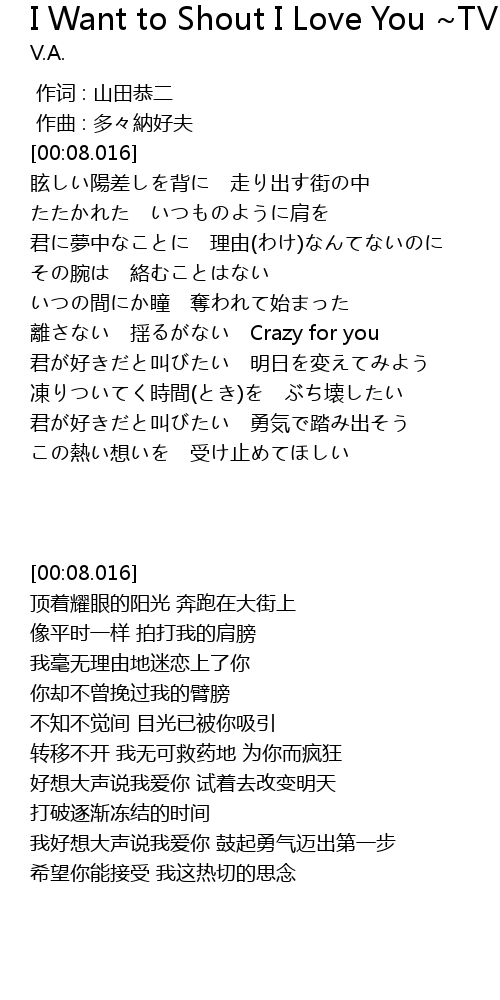 | Song | I Want to Shout I Love You ~TV Version~ |