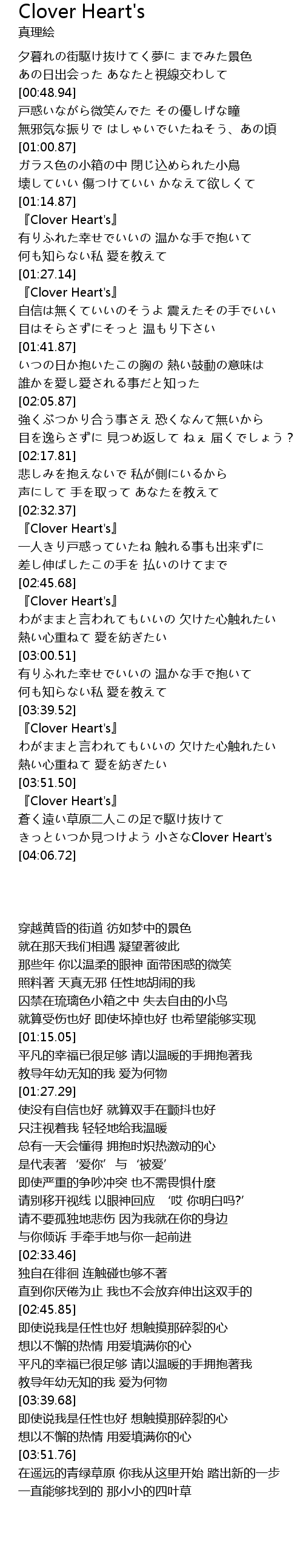 | [02:33.46] | 『Clover Heart's』 |