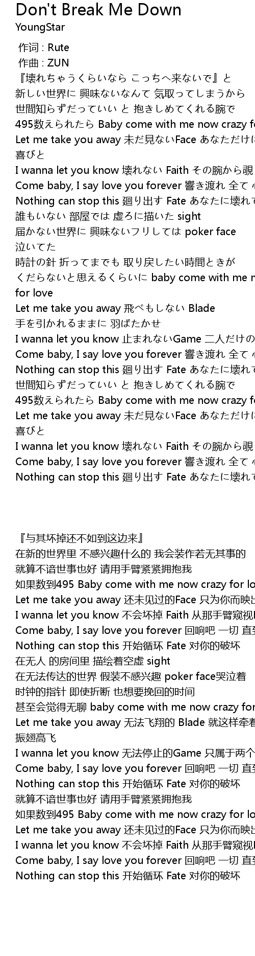 | [02:22.19] | I wanna let you know 止まれないGame 二人だけの恋のMaze |