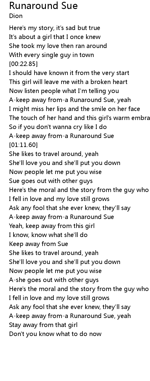 A-keep away from-a Runaround Sue, yeah |