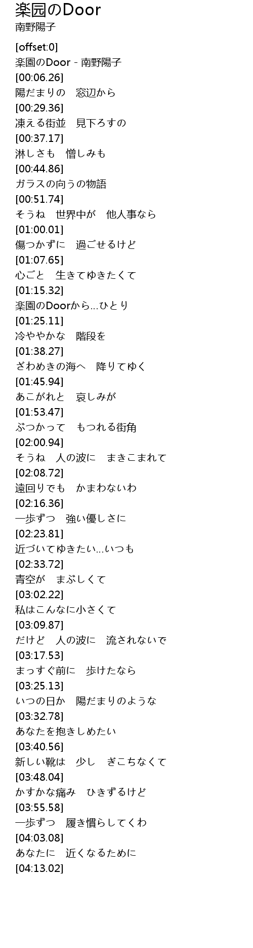 | [00:00.30] | 楽園のDoor - 南野陽子 |