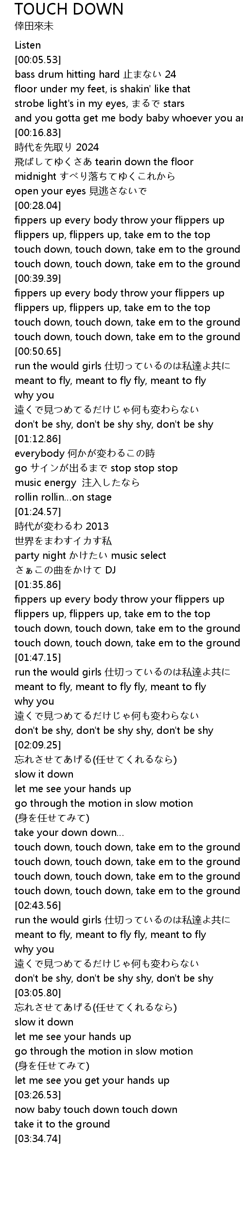 | [03:31.73] | now baby touch down touch down |