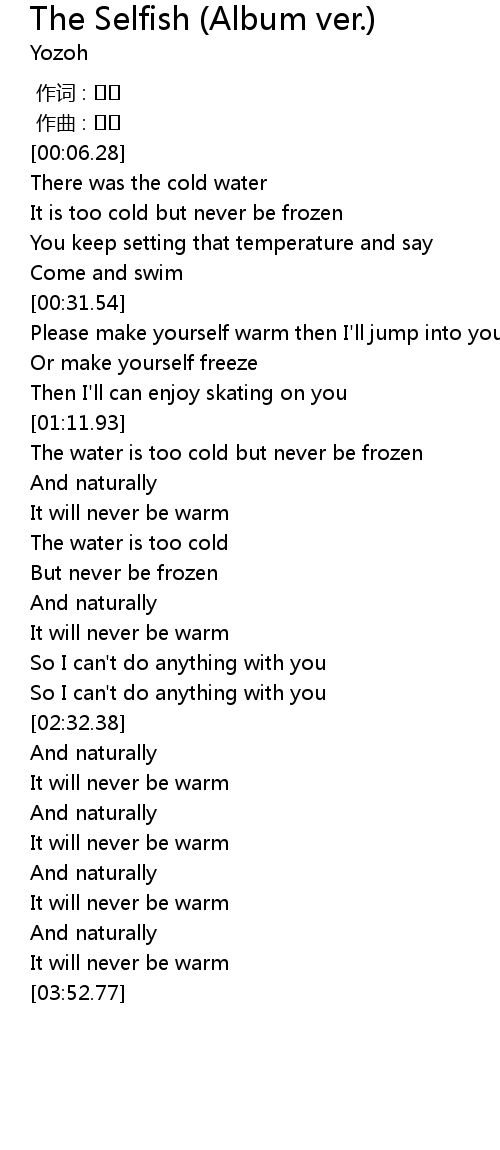 | [01:51.07] | The water is too cold |