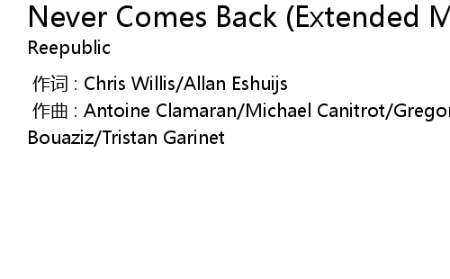 | Song | Never Comes Back (Extended Mix |