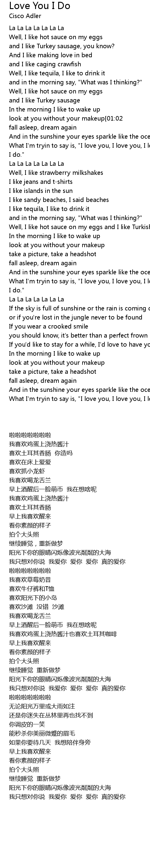 What I'm tryin to say is, "I love you, I love you, I love you. Love you, I do." |