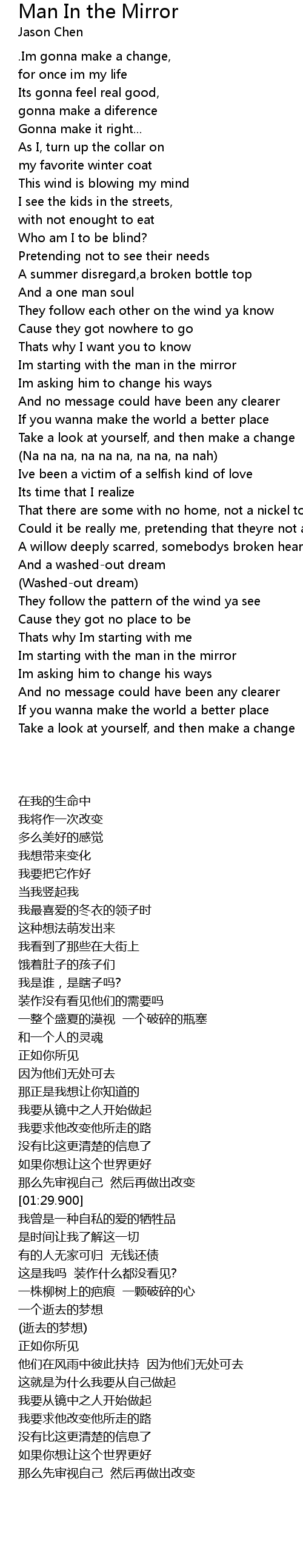 Im starting with the man in the mirror |