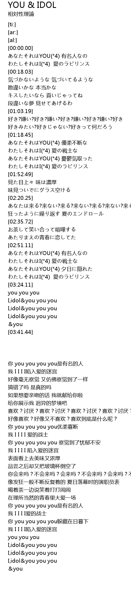 | [00:00.56] | あなたそれはYOU(*4) 有名人なの |