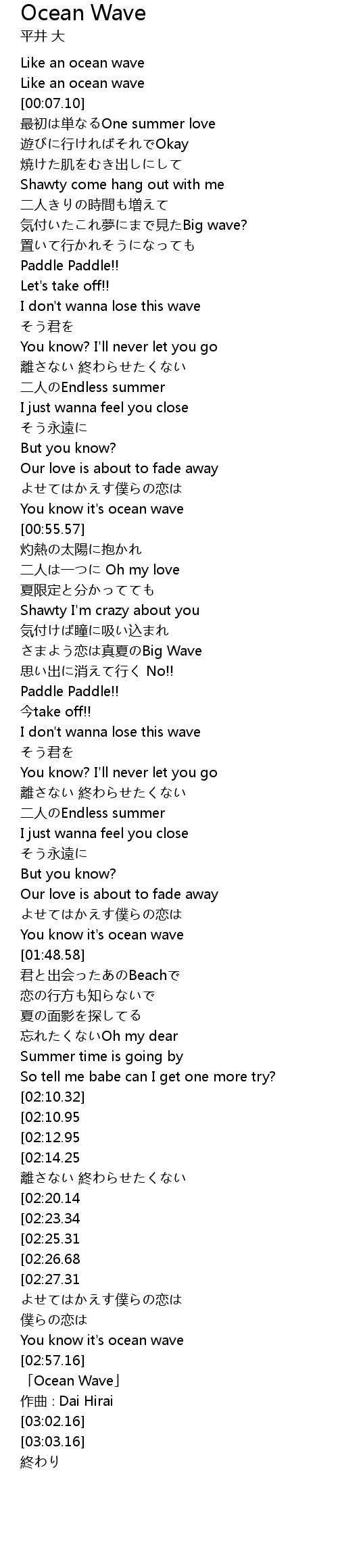 | [02:58.16] | 「Ocean Wave」 |