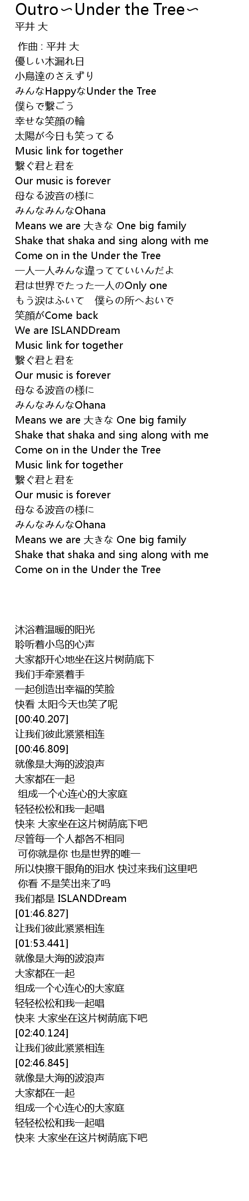 | [00:19.537] | みんなHappyなUnder the Tree |