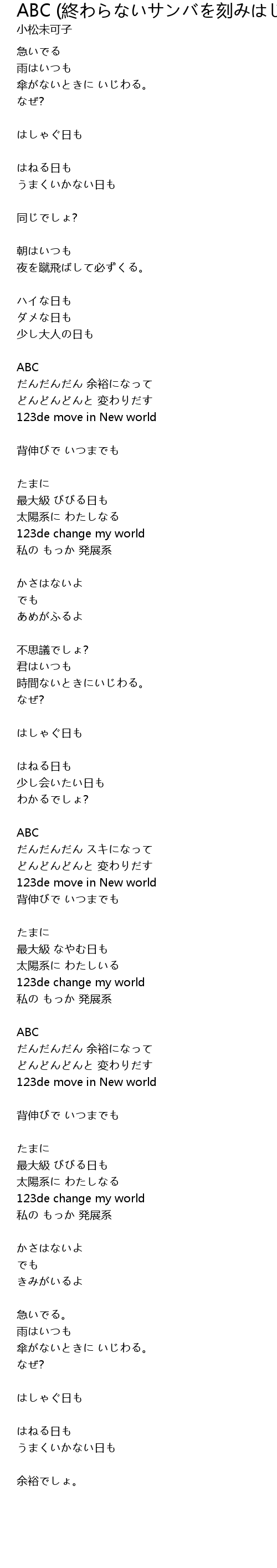 | Song | ABC (終わらないサンバを刻みはじめました。 ver.) |