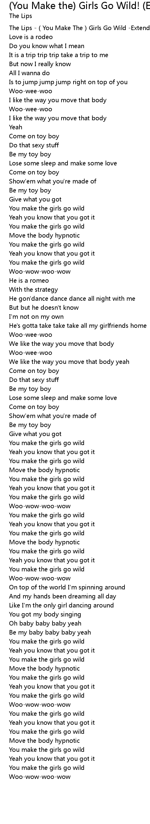 | [00:00.700] | The Lips You Make The Girls Go Wild Extended ban |