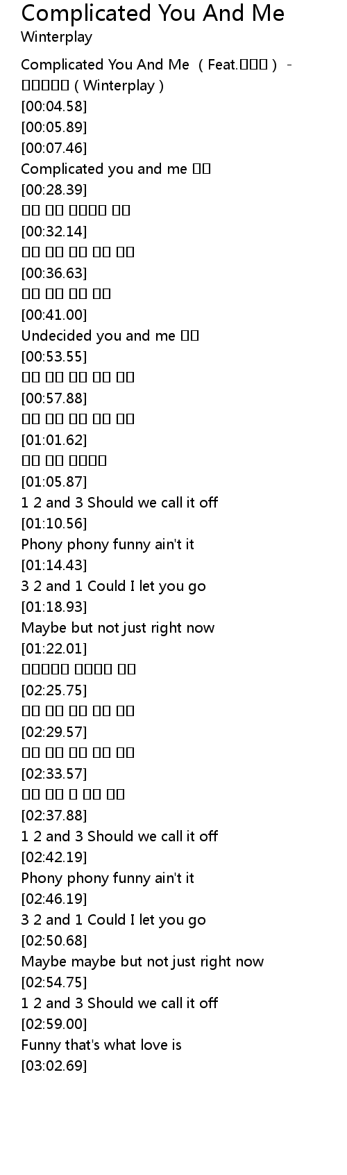 | [00:00.46] | Complicated You And Me (Feat.장윤주) - 윈터플레이(Winterplay) |