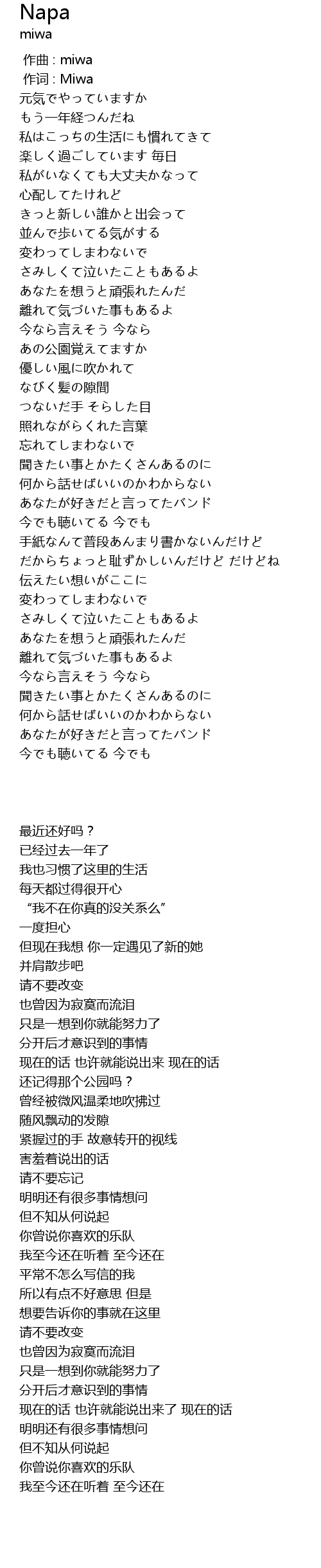 作词 : Miwa |