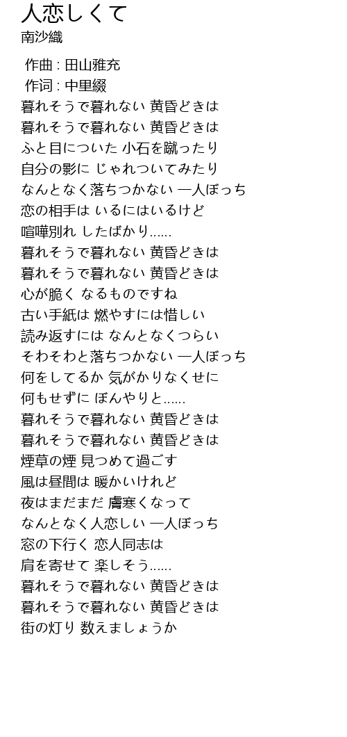 | [03:12.73] | なんとなく人恋しい 一人ぼっち |