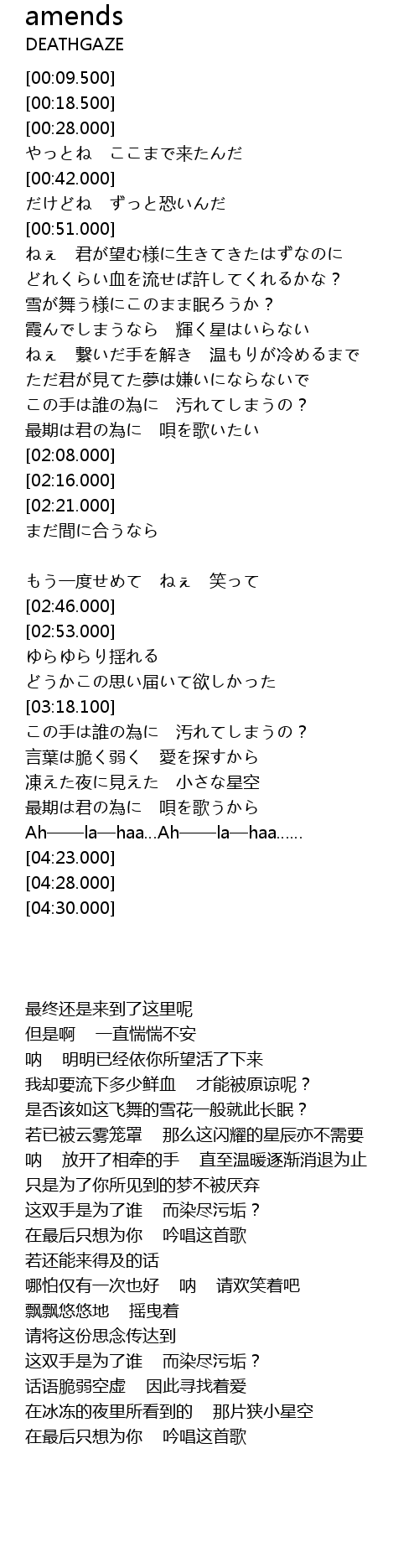 | [01:58.000] | 最期は君の為に 唄を歌いたい |