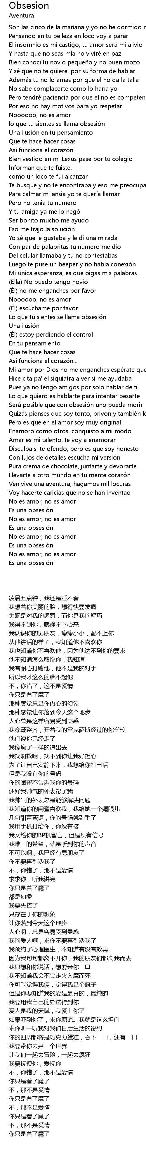 | [02:54.01] | Será posible que con obsesió n uno pueda morir |