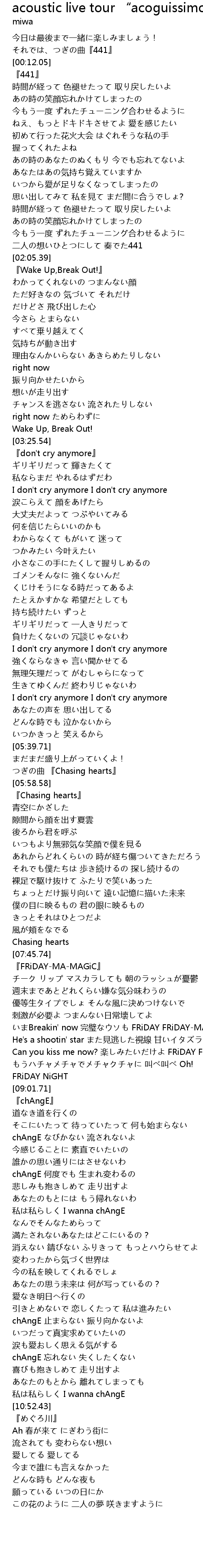 | [05:55.24] | つぎの曲 『Chasing hearts』 |
