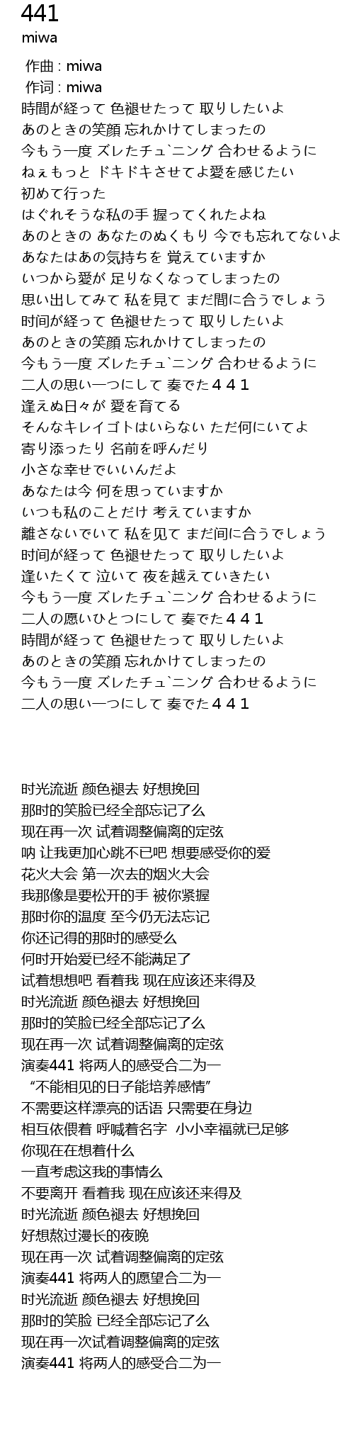 | [03:01.500] | 二人の愿いひとつにして 奏でた441 |