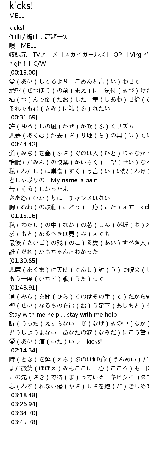 | [00:00.00] | kicks! |