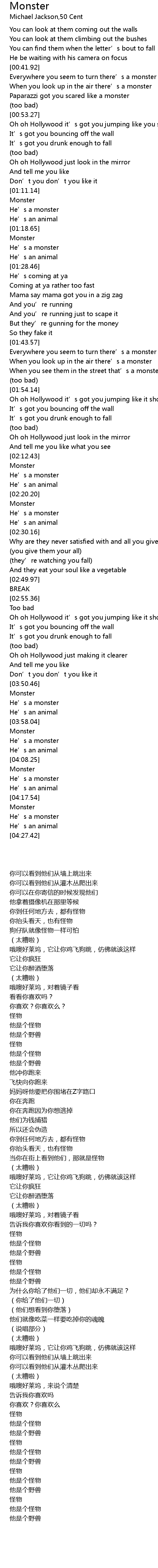 | [03:50.69] | Monster |