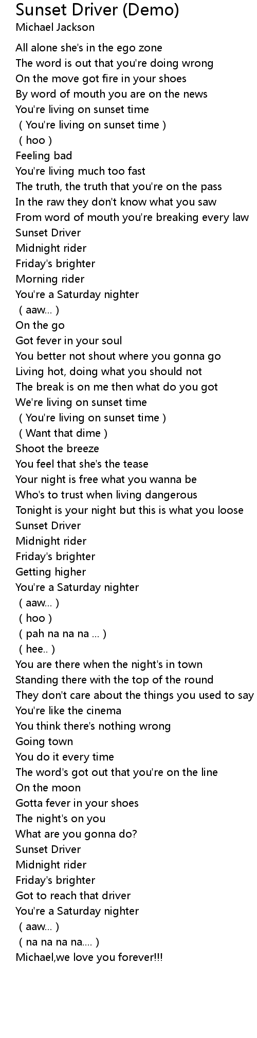 | Sunset Driver | |