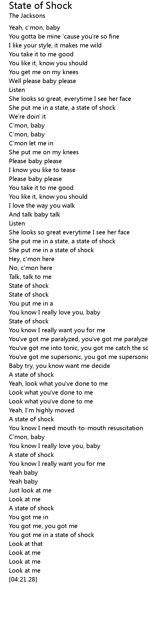 You got me in a state of shock |