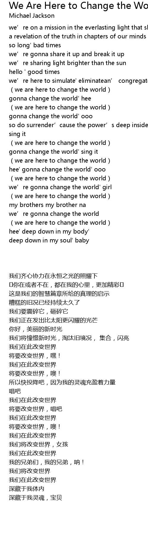 | [00:25.560] | we' re on a mission in the everlasting light that shines |