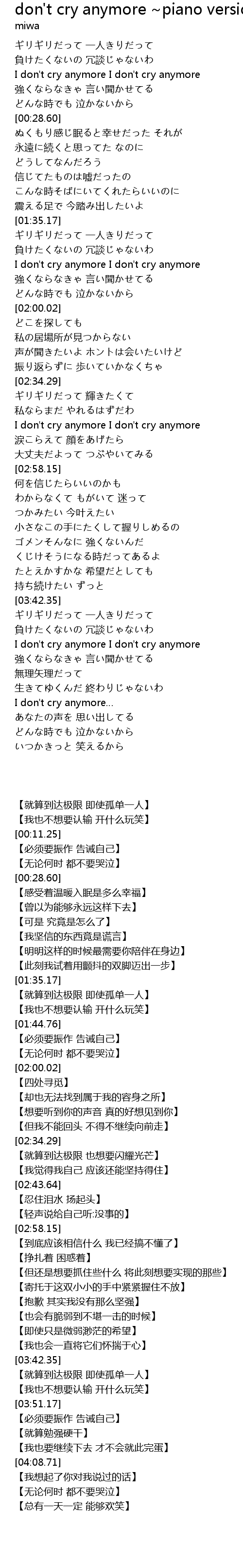 | [03:51.17] | I don' t cry anymore I don' t cry anymore |