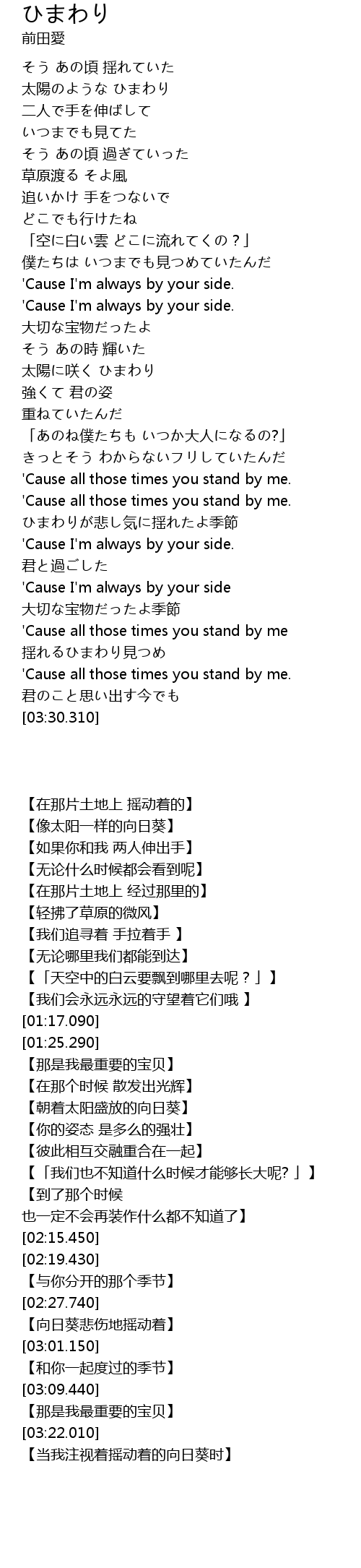 | [01:46.060] | 太陽に咲く ひまわり |
