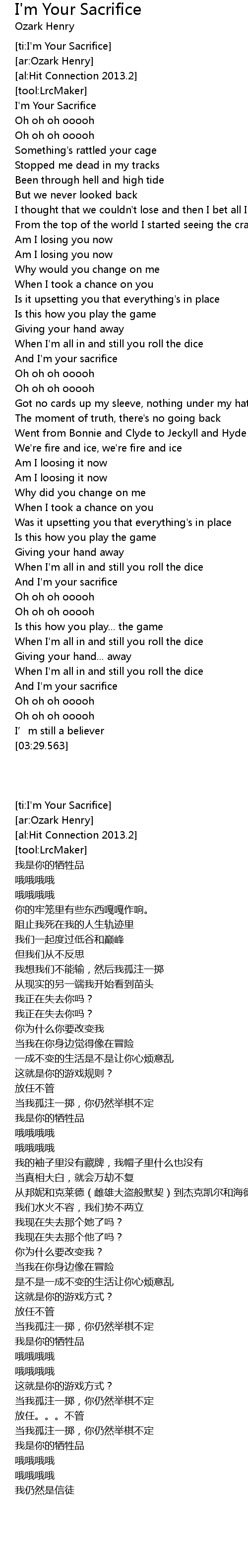 | [00:02.392] | I' m Your Sacrifice |