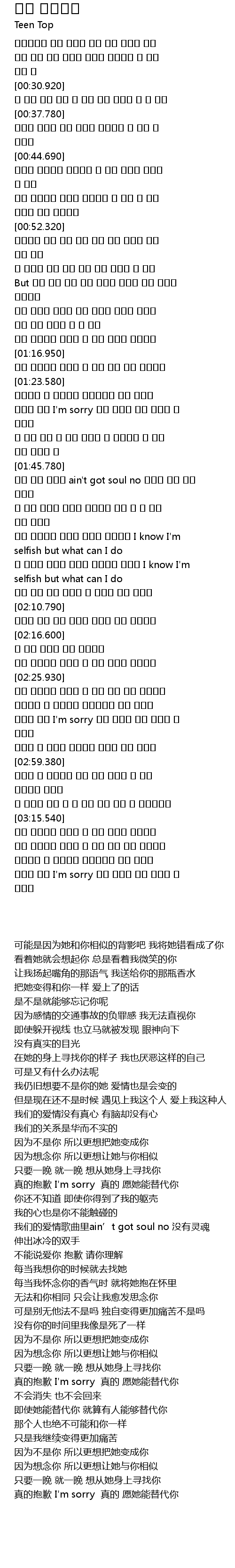 니가 보고싶을 때마다 그녀를 찾아갈래 I know I'm selfish but what can I do |