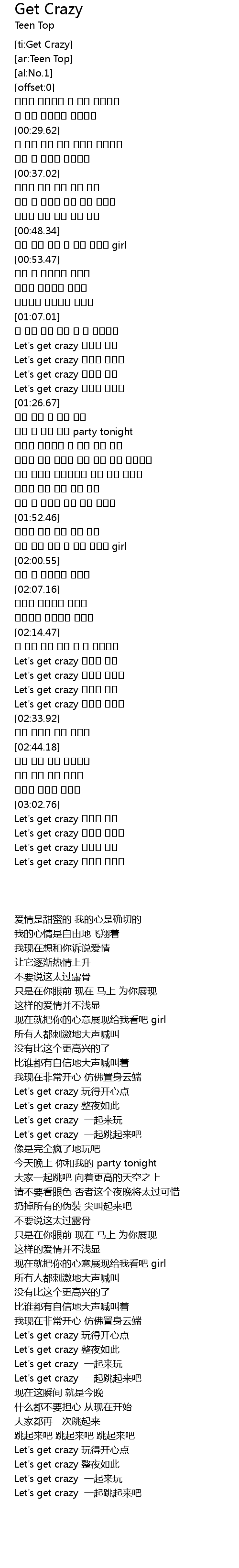 | [02:26.68] | Let's get crazy 다같이 놀아 |