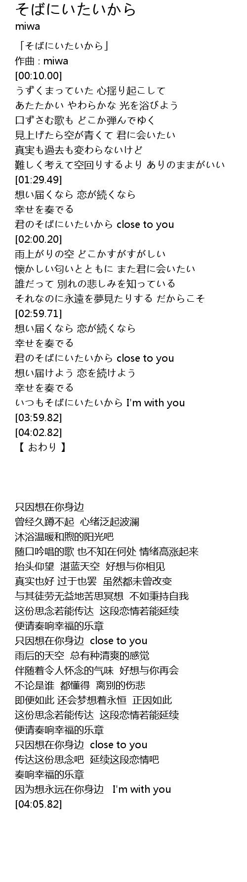 | [03:47.57] | いつもそばにいたいから I'm with you |